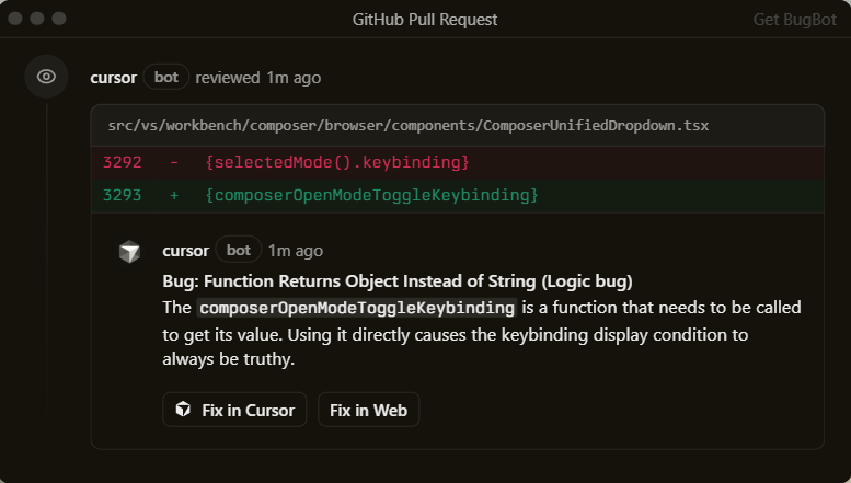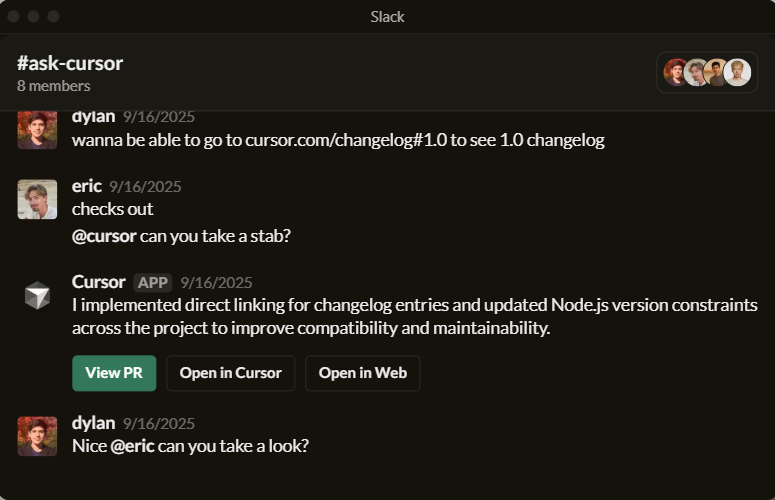 Learn about Tab →Cursor is in GitHub reviewing your PRs, a teammate in Slack, and anywhere else you work.